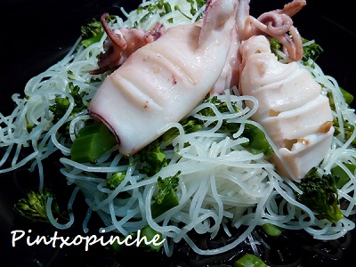 BIMI CON FIDEOS DE ARROZ Y CHIPIRÓN