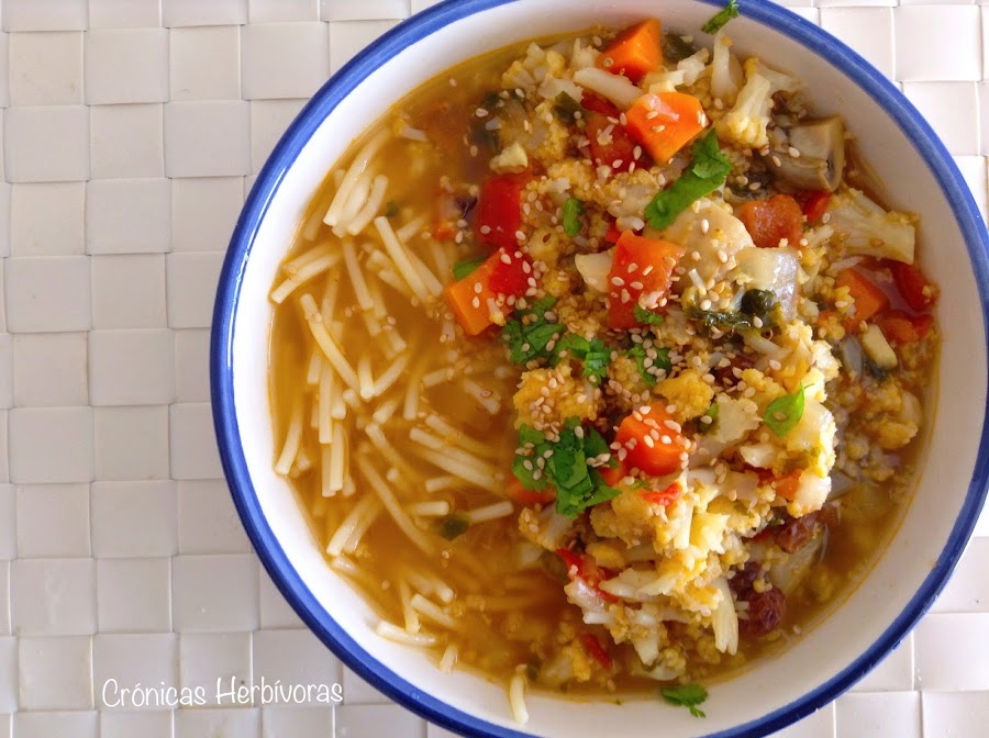 Sentíos libres de añadir o cambiar ingredientes (la cocina es creatividad), ¡yo le he añadido fideos!.