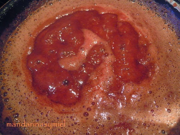 Ponlas en un cazo con el azúcar y cuécelas a fuego lento hasta que quede una crema, deja que se enfríen.
