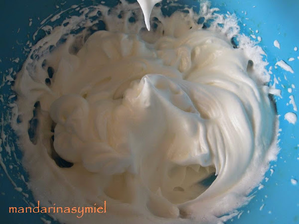 Monta las claras a punto de nieve bien firmes, añade el azúcar y sigue batiendo.