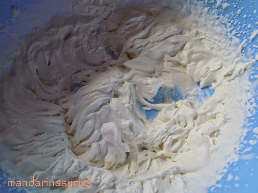 Monta la nata (crema de leche) (que debe estar muy fría y así monta mejor).