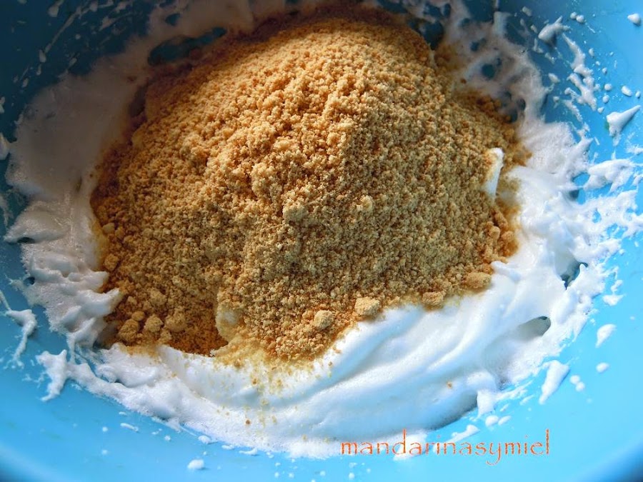 Mezcla el merengue con las galletas y con la nata (crema de leche).