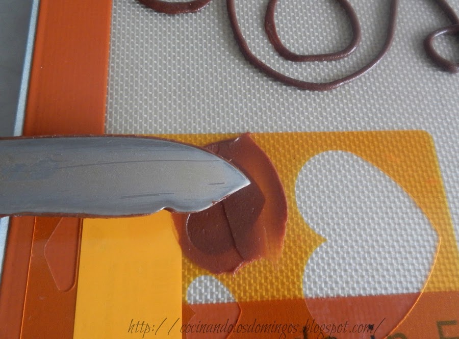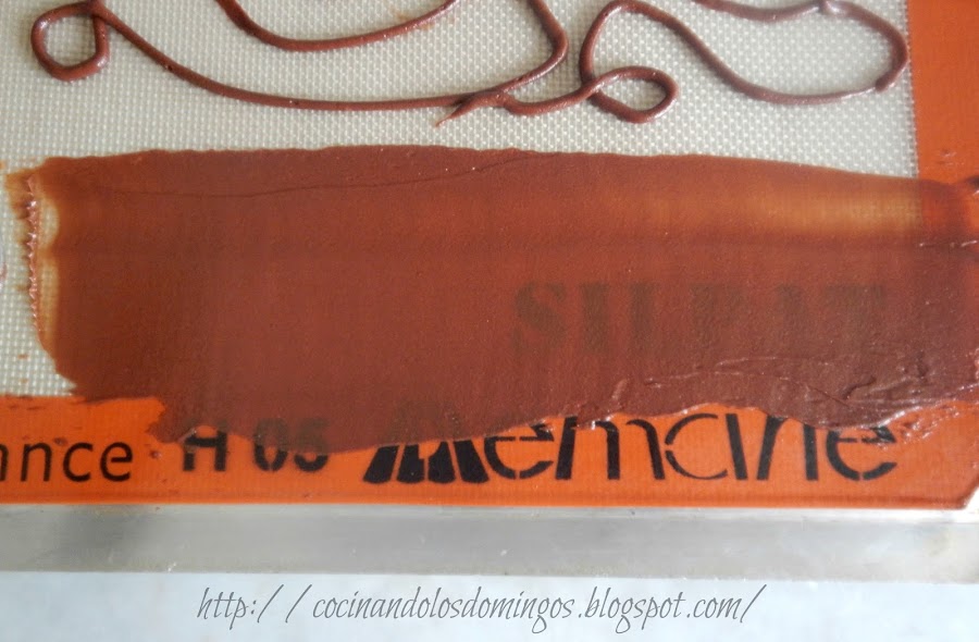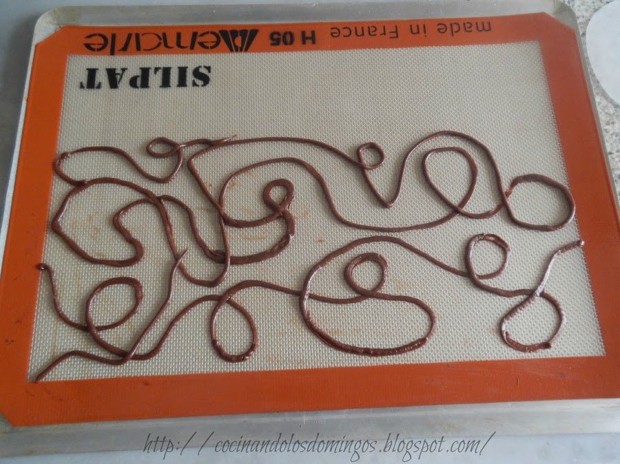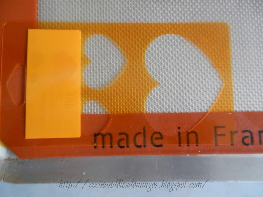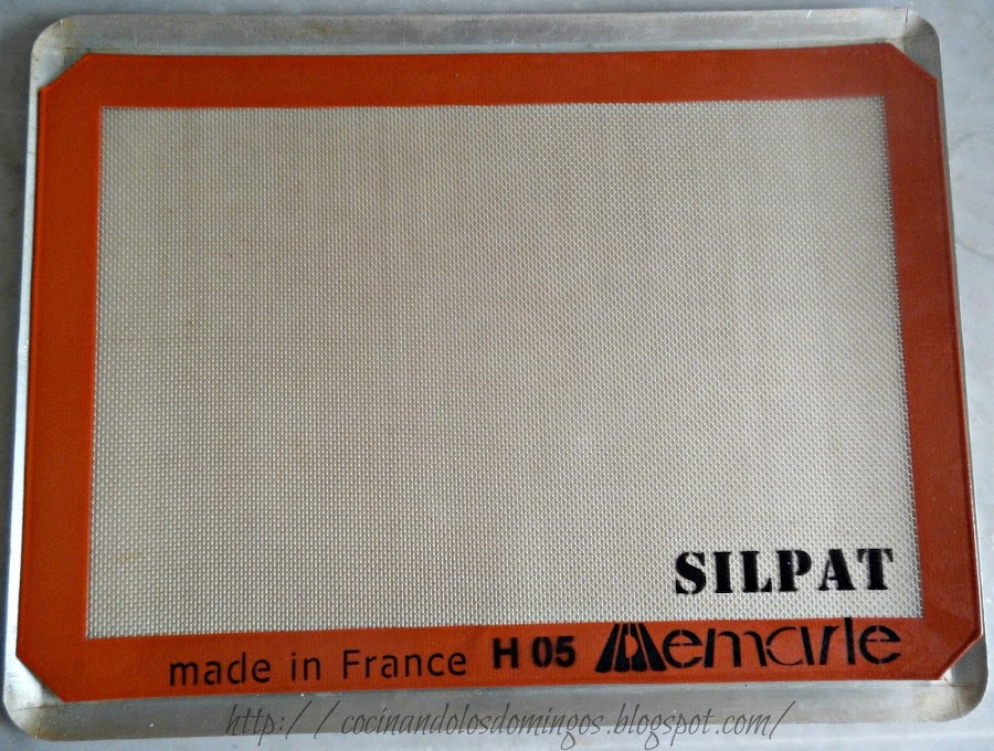 Preparamos una placa de horno de 30 x 40cm con un tapete de silicona, (si no tienen uno preparan la placa engrasándola con mantequilla fundida, ponen arriba papel manteca o parafinado, nuevamente se engrasa y se guarda en la nevera hasta el momento de usar, debe estar muy fría).