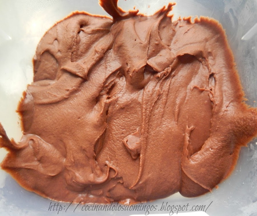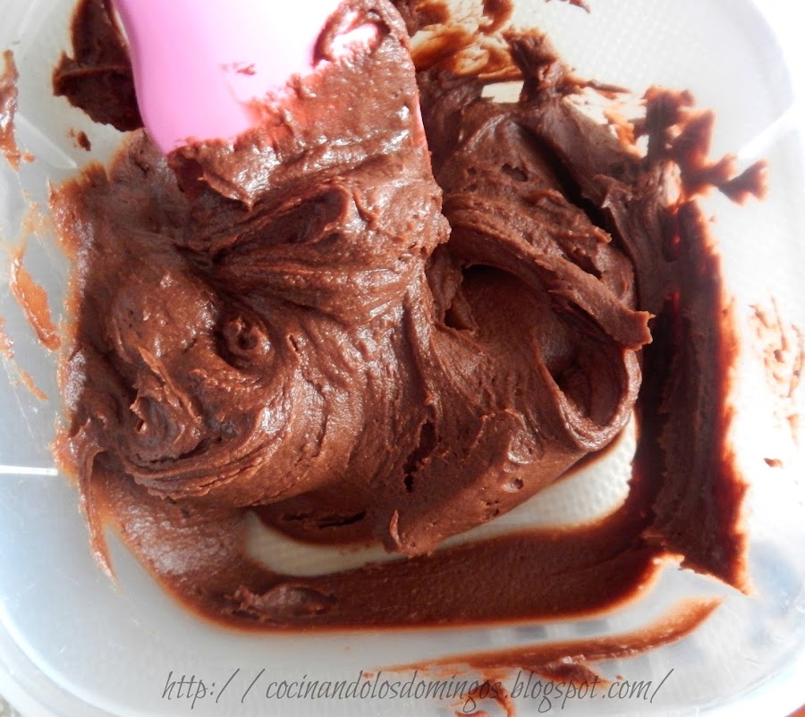 Tomamos la masa 1 (en este caso la de cacao) y la mezclamos un poco para homogeneizar.