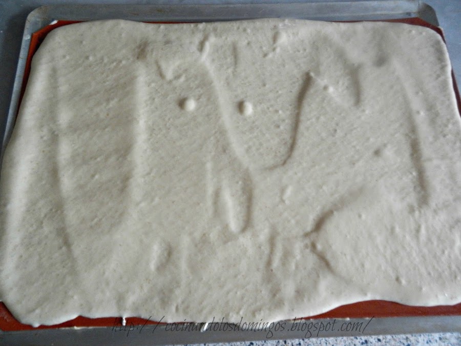 C) con una espátula esparcimos una capa delgada de masa en toda la superficie del tapete