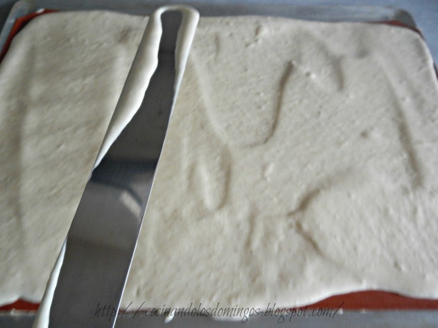 Esparcimos rápidamente con una espátula larga lo mas parejo posible