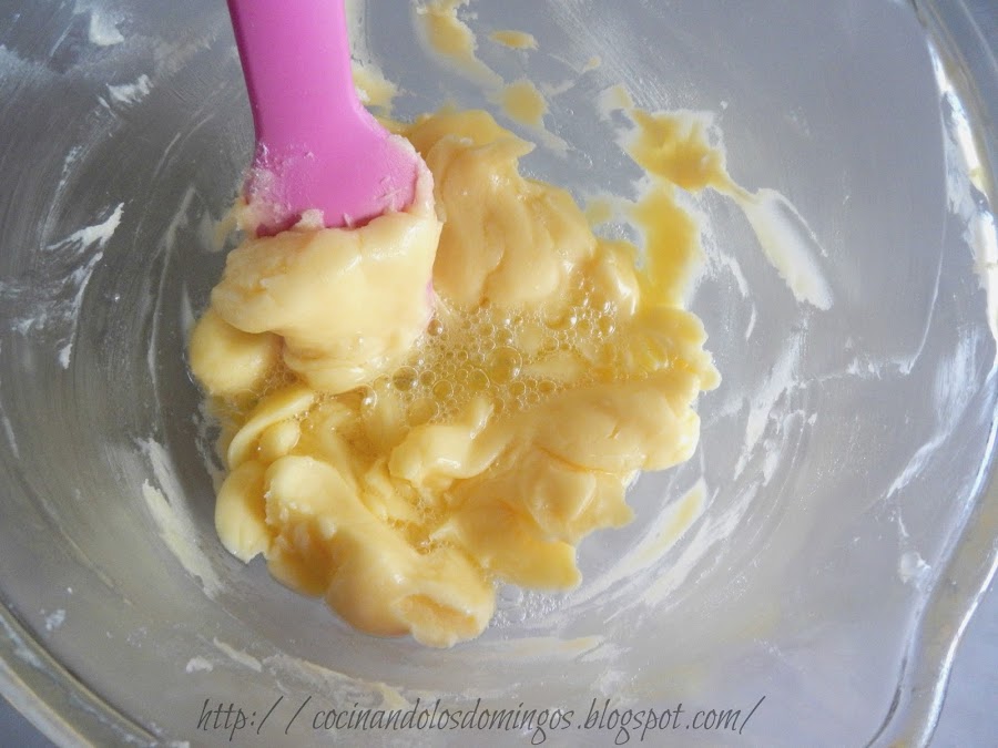 En un bol ponemos la mantequilla a temperatura ambiente o pomada en cubitos