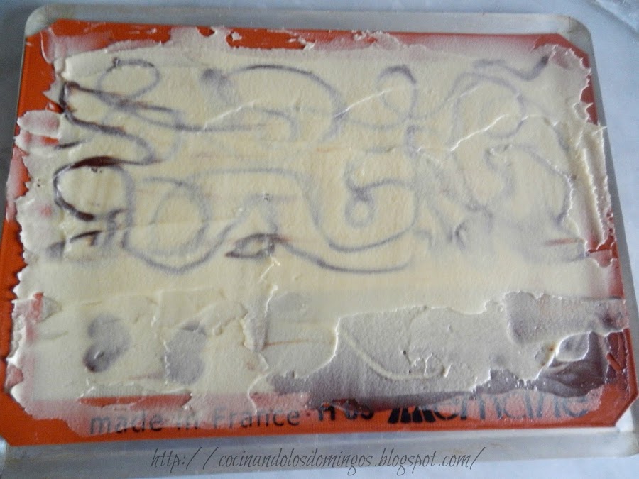 Lo mas importante de esta técnica es dejar congelar bien las masas entre paso y paso para que no se corra el diseño, como nos paso a nosotros ya que no entraba la bandeja en el congelador, la tuvimos que poner en la nevera y no endureció mucho