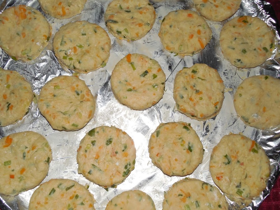 5)_Elegimos una bandeja y enmantecamos,(yo utilizo una bandeja grande y la cubro con papel aluminio para que la limpieza sea más fácil luego).Acomodamos los biscuits y pincelamos con un poquito de leche,llevamos al horno medio durante apróx. 15 minutos ó hasta que estén dorados.