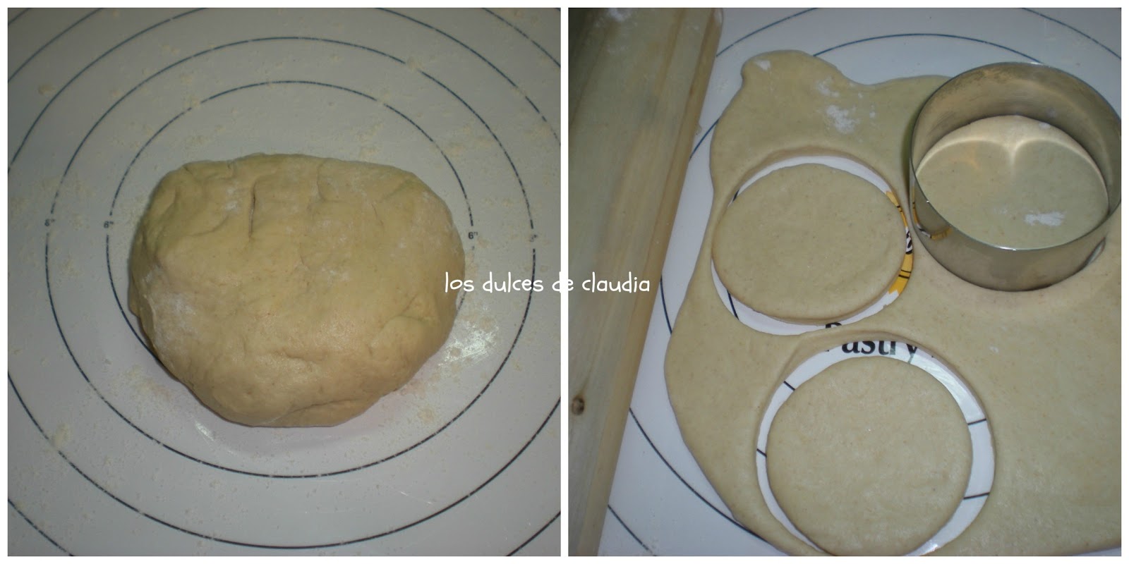 Estirar la masa hasta que tenga un grosor de dos pulgadas, cortar círculos.
