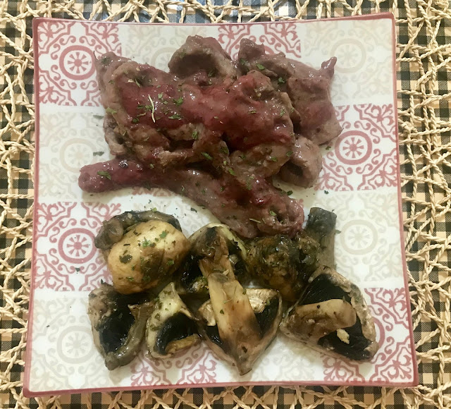 Nosotros hemos acompañado de champiñones al ajillo pero también estará muy bueno con unas patatas de guarnición o con un arroz blanco.