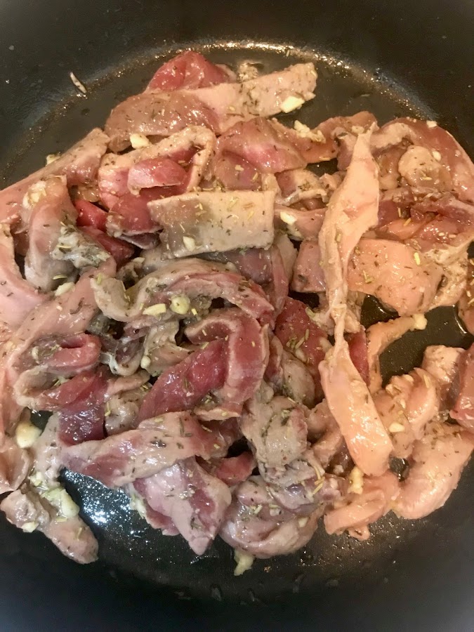 Pon en el vaso 1 diente de ajo, 20 g de aceite de oliva, el tomillo, el romero, la sal y la pimienta negra y pica 5seg/vel7. Ponlo sobre la carne, mezcla y reserva.