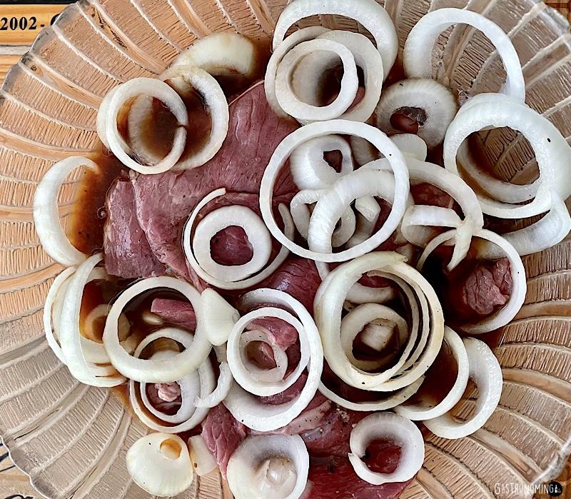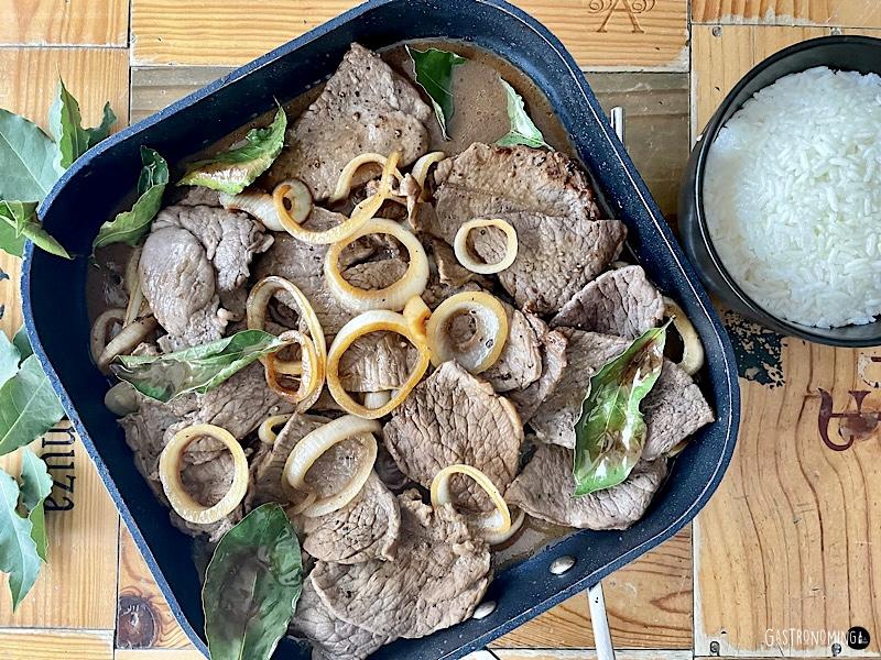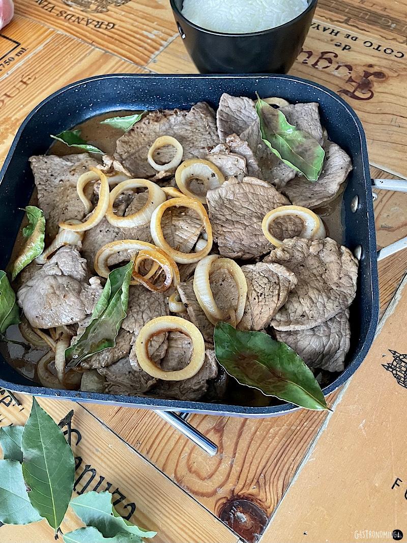 Entonces, por la ubicación y clima del archipiélago, Filipinas cuenta con una gran despensa de productos, verduras y frutas tropicales, diversidad de carnes, pescados y mariscos, y debido a sus chorroscientas influencias de otros países, incluso de varios continentes, es normal que su gastronomía sea tan variada y tan rica. La cocina filipina es la joya oculta de Asia y próximamente estoy seguro que se pondrá de moda, así que por que no disfrutarla ya, empezamos con este Bistek tagalog, no te arrepentirás, eso es garantía Gastronoming y más adelante te traeremos más platos filipinos, los clásicos ya sabes, alguno de los ya mencionados o la sopa sinigang, la más popular del país, unos lumpiang (rollitos de primavera), un kare kare de clara influencia India, el potente sisig, una reconfortante kaldereta, una afritada o un quizás un adobo, su plato más popular, estos últimos con influencias más reconocibles.