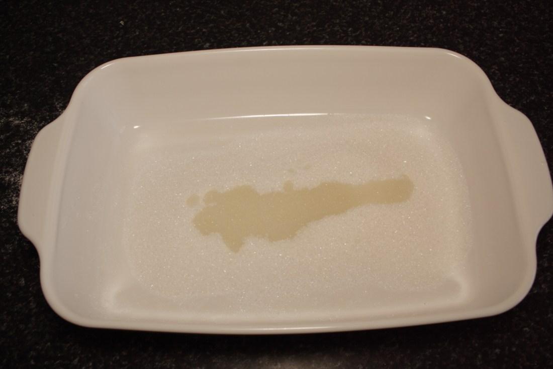 Escogemos el recipiente para nuestro postre, en ésta ocasión una fuente de cristal rectangular de 17 x 25 x 5 cm.