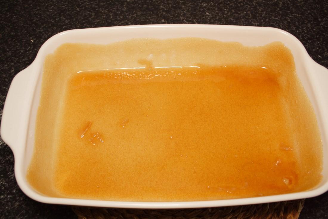 Vertemos con cuidado sobre el molde caramelizado. Reservamos.
