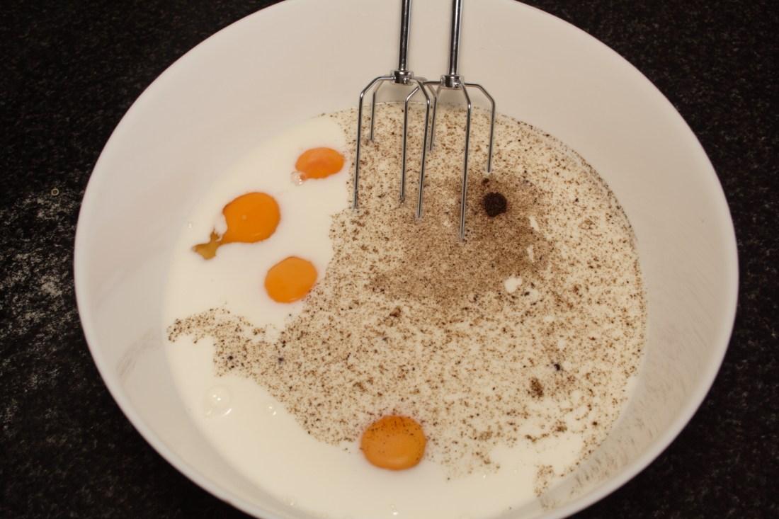 En un bol echamos todos los ingredientes del flan, batimos con las varillas eléctricas hasta que quede todo bien mezclado.