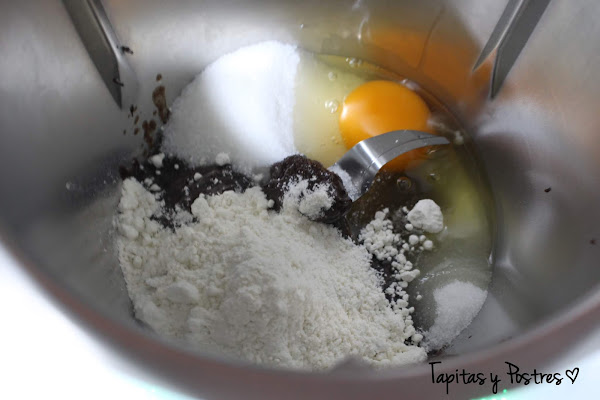 Mientras se hornea la parte del brownie habremos hecho la parte del bizcocho para tenerla preparada.