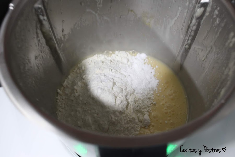 Agregamos la harina y la levadura y acabamos de mezclar.