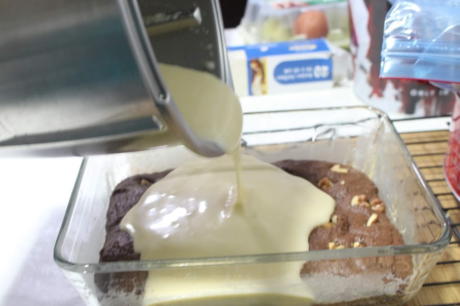 Vertemos sobre la capa de brownie que habremos sacado sin apagar el horno, ¡eh! Y de nuevo al horno.