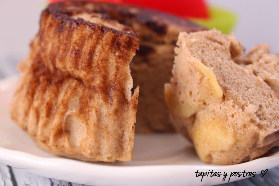 El cacao que hemos espolvoreado en el molde le da un colorcito dorado. Ya sabéis que el micro deja un color poco apetitoso.