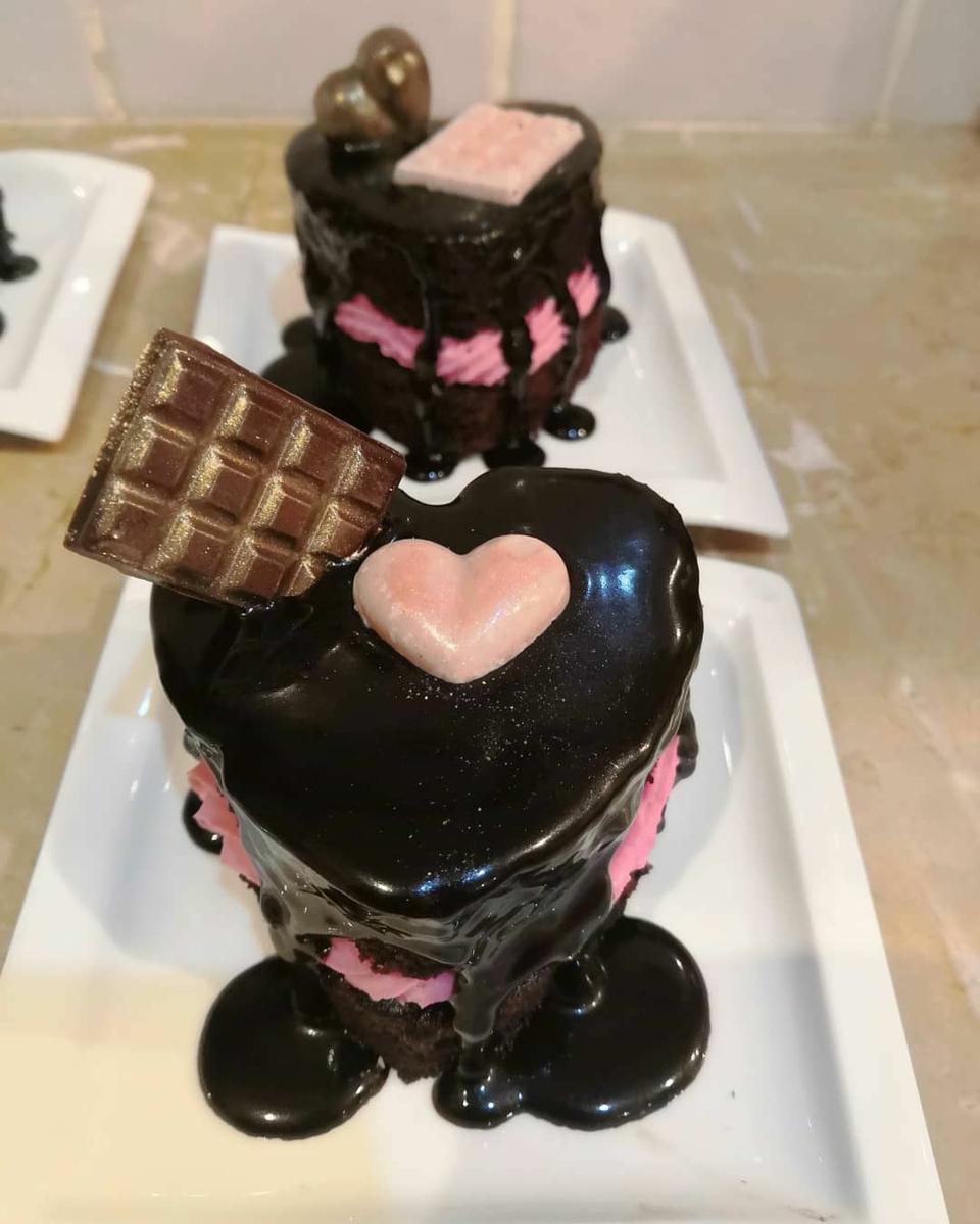 La semana pasada hice unos bizcochitos de San Valentin espectaculares, no solo eran hermosos, sino que además estaban deliciosos y causaron verdadero furor en casa, hasta mi hija que no es muy de dulce se zampó 2!!! Me apetecía mucho hacer un bizcocho con forma de corazón y se me ocurrió que quedarían muy bonitos si fueran bizcochos individuales, y la verdad que son una verdadera cucada. Otra cosa que tenía muchas ganas de probar también era hacer pequeñas tabletas de chocolate, encuentro que son una monada y quedan divinamente sobre cualquier tarta o cupcake, me encantan.