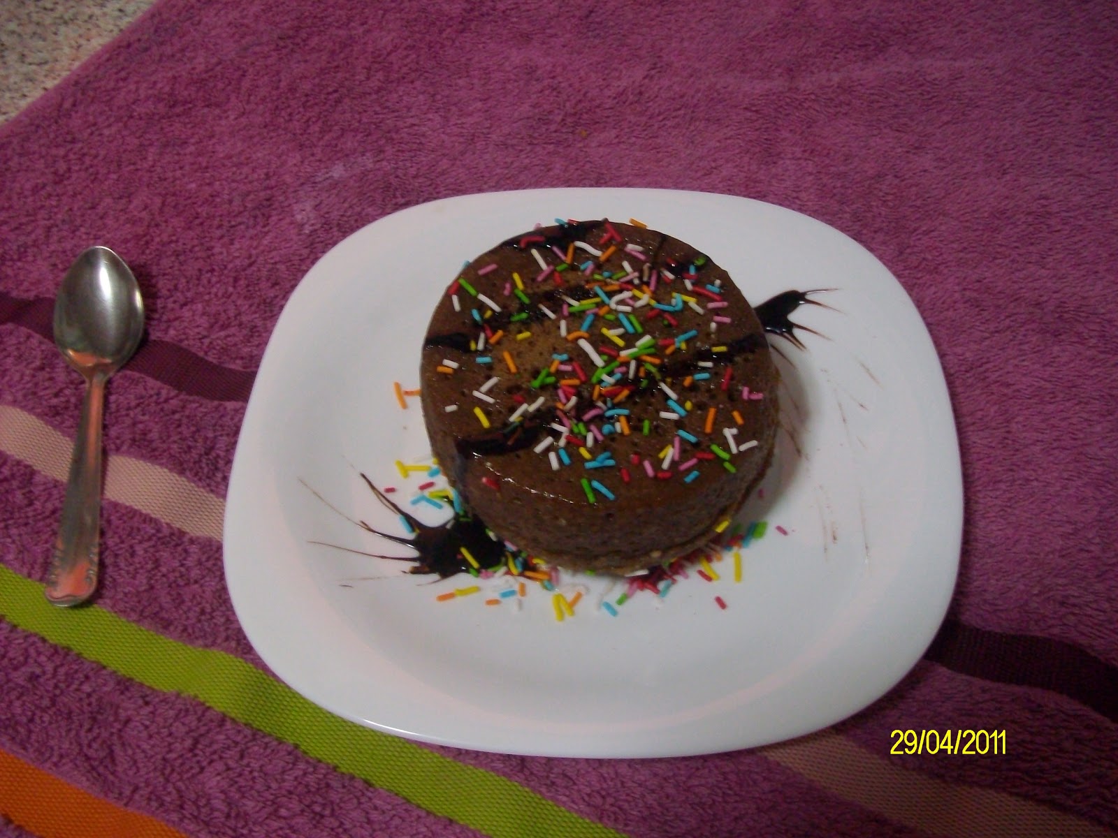 Preparamos una taza (tipo tazón de desayuno), batimos en ella el huevo, después añadimos el resto de los ingredientes, mezclamos bien todo.....y al micro 3 MINUTOS. Y listo!!!Podéis comerlo en la misma taza o desmoldar y servir en un plato.También podéis rellenar de nata (crema de leche), chocolate liquido.....Hoy lo preparó mi hija pequeña con las amigas y aquí os lo enseño. Y aquí esta el tazón donde lo hicimos, también se puede hacer en vaso.