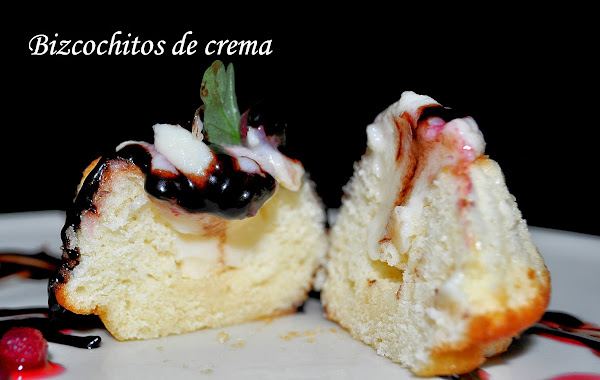 Así que algo rápido y rico, la crema, que no falla. Y tanto que no porque estaban buenísimos. Añadí unos frutos rojos por encima, que me decoloraron un poco la crema, y un poco de chocolate. Hice otro con crema y cobertura de chocolate pero no están para presentar así lo dejo en vuestra imaginación.