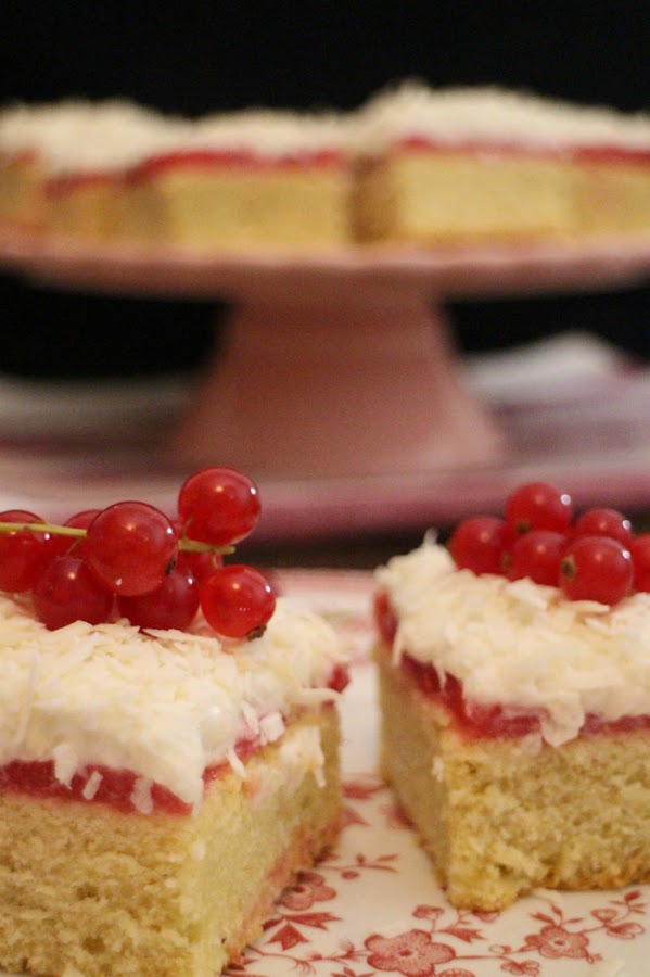 En este caso se me ha metido en la cabeza que quería hacer una receta en la que las grosellas fueran parte integrante y combinarla con coco.