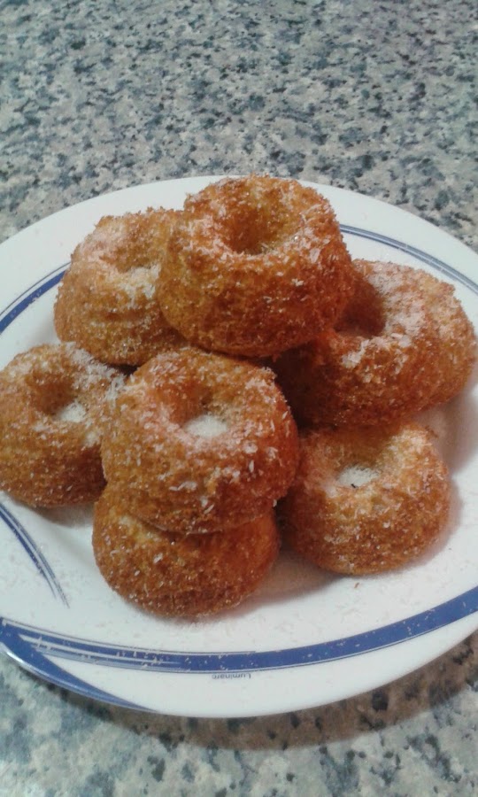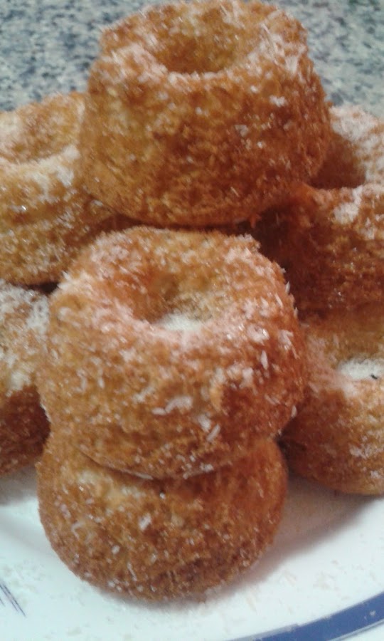 Se sacan del horno y se dejan enfriar, se espolvorean de azúcar y coco.