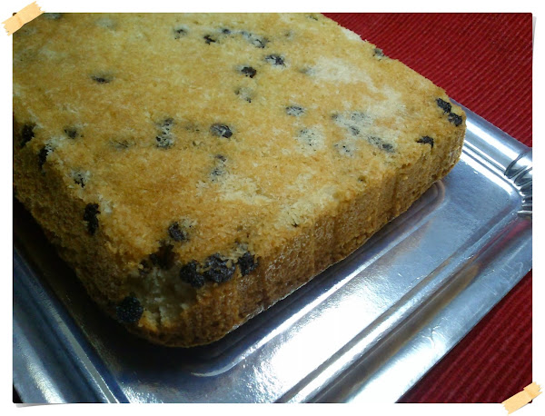 En esta receta hice unas variaciones sobre la original: Cuando engrasé el molde con mantequilla, en vez de ponerle harina, lo espolvoree con coco rallado y además le puse unas pepitas de chocolate antes de verter la masa. El resultado: Expectacular!!