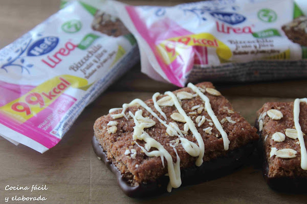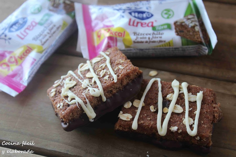 Seguro que quieres comer algo dulce y no renunciar a que tenga muchas calorías. Estoy participando en una campaña de youzz sobre algunos productos de Hero Linea. Entre ellos los bizcochitos de fruta y fibra, que solo tienen 99 kcal. y que son perfectos para un picoteo a media mañana o por la tarde. Yo he hecho esta variante de añadir un fondo de chocolate negro y unos hilos de chocolate blanco. Un poco más de sabor y calorías, pero aún así no mucho. Espero que os guste.