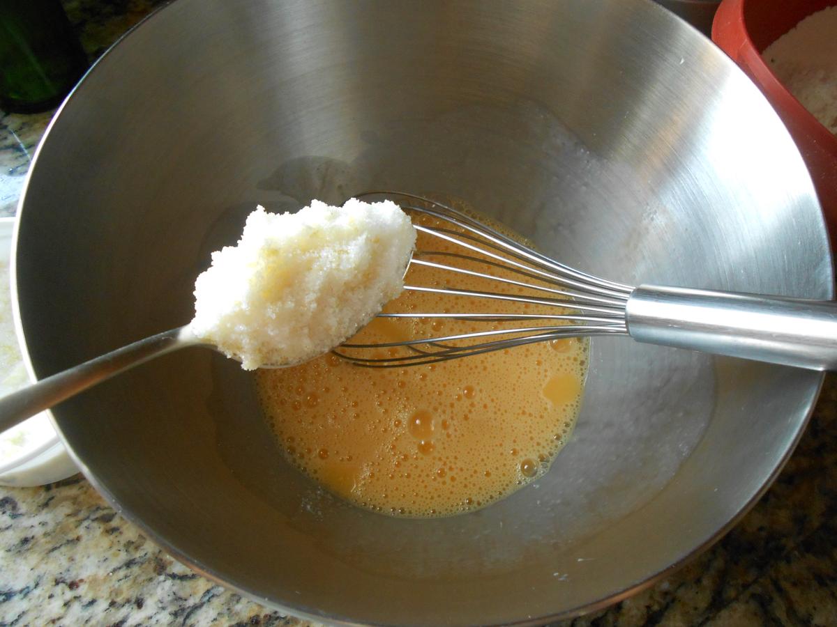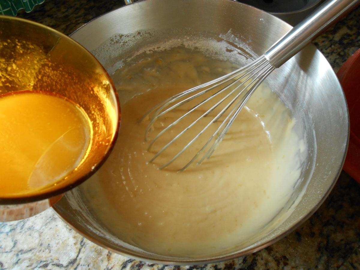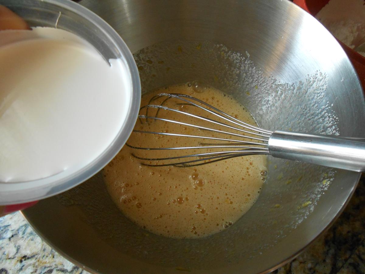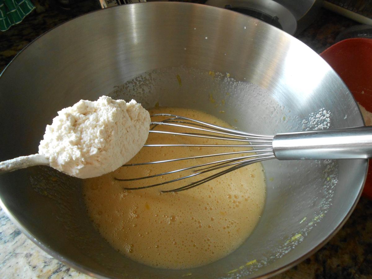 Ir echando la mezcla de harina y levadura y seguir mezclando pero sin montar.