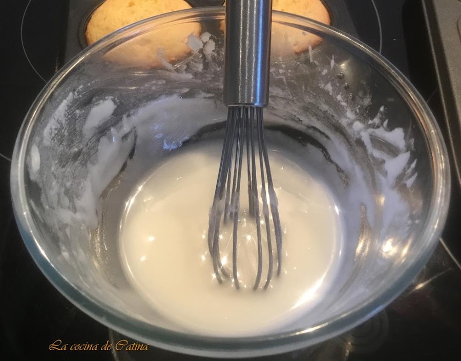 Mientras hacemos el glaseado, mezclando el azúcar glas con el zumo de limón poco a poco removiendo para que no se hagan grumos.