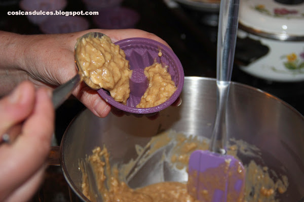Llenamos con la masa nuestros moldecitos y horneamos a 180 grados con el horno precalentado hasta que estén hechos (en mi caso 17 minutos).