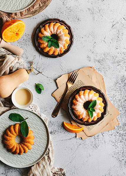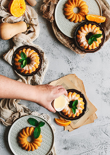Estos bizcochitos son humedos e irresistibles. El glaseado de naranja, si lo hacemos bien espesito, les da un toque "crunch" que me encanta. Unas hojitas de menta para decorar, vestirlos bonito y a servirlos como el mejor de los manjares, que con el ojo también se come a veces, jejeje.