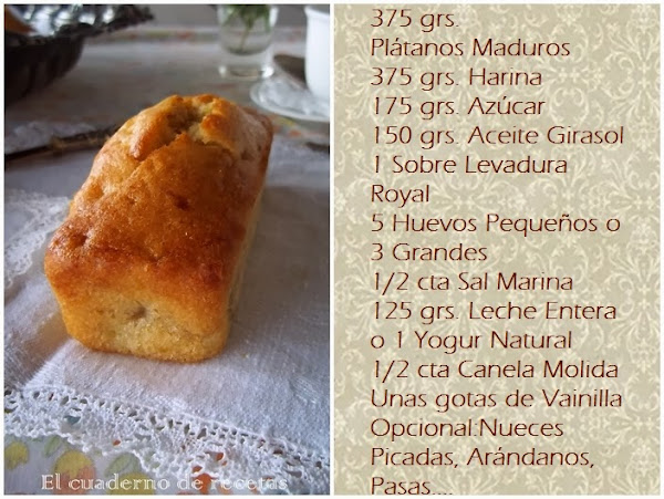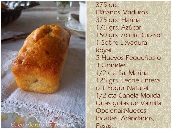 Aunque todo tiene arreglo, y más con las ganas de hacer bizcochos que tenemos algunas. Así que cuando ví, que Marta en su blog Sweet & Home publicaba el suyo de plátano, pensé que no podrían tener mejor destino. Claro que he acomodado algunos ingredientes con lo que tenía en casa, que ayer estaba lloviendo, y no había ganas de salir a comprar nada.
