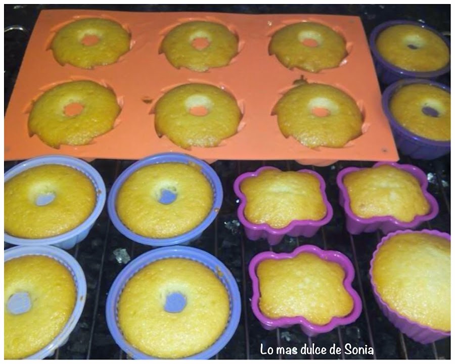 Horneamos a 180 grados durante unos 30 minutos, vigilando que cada horno es diferente, además son moldes pequeños.