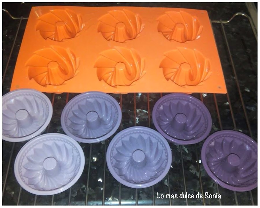 Engrasamos bien los moldes que vayamos a utilizar, con spray desmoldador o aceite de girasol.