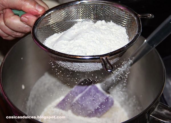 Finalmente incorporamos la harina mezclada con la sal y la levadura química.
