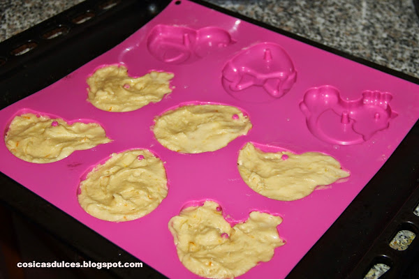 Ayer, lunes de Pascua, disfrutamos como manda la tradición de una tarde de monas. Es decir, de una jornada de playa o campo que sirve como excusa para disfrutar de una merienda entre familia y amigos. En Águilas lo más característico de este día son lo que aquí llamamos hornazos (en otros sitios monas) que por supuesto no faltaron en nuestra merienda. Pero además de eso este año quise innovar un poco y aprovechando unos preciosos moldes de silicona de Silikomart con motivos de Pascua preparé unos bizcochitos Pascuales de mi querida amiga y excelente cocinera Liliana que había visto en Directo al Paladar. Espero que os gusten.