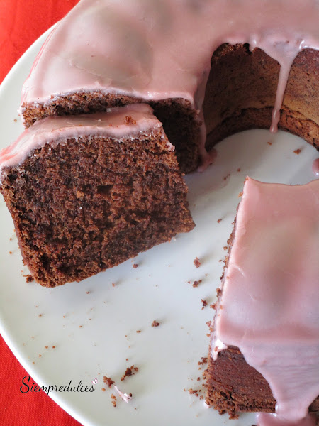 La segunda tiene que ver con el glaseado. En la receta he utilizado un glaseado sencillo de vino tinto, para potenciar su sabor y porque me encantaba el toque rosa que daba a este bizcocho tan romántico. Pero podéis cubrirlo con una ganache sencilla, o con una ganache con un poco de vino, o simplemente con azúcar glace. ¡La elección es vuestra!.