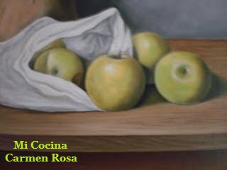 En ésta ocasión, así se lo comentaba en su blog cuando ví que habia preparado un bizcocho de manzanas que me llamó la atención, no sólo porque era fácil, se veía delicioso y porque estuviese hecho con una de las frutas que no faltan en mi cocina (a mi hijo no le gusta otra manzana que la más ácida, la más verde y llamativa: la granny), tanto en la real como en la virtual donde es quizás una gran protagonista, siendo la imagen corporativa de mi blog.