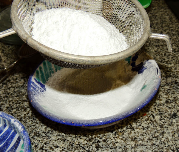 Cuando esté frío completamente, se prepara el glaseado, para ello, se tamiza el azúcar glas con ayuda de un colador.