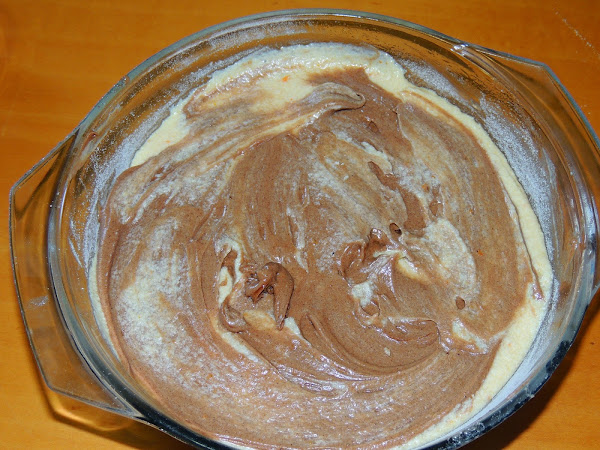 Con el mango de una cuchara de madera, se mezcla un poco la masa para darle el efecto amarmolado.