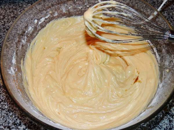 Se precalienta el horno a 190º. Se bate la mantequilla reblandecida con el azúcar hasta que la crema blanquee. Luego se añaden los huevos uno a uno batiendo bien, más la harina y la levadura.