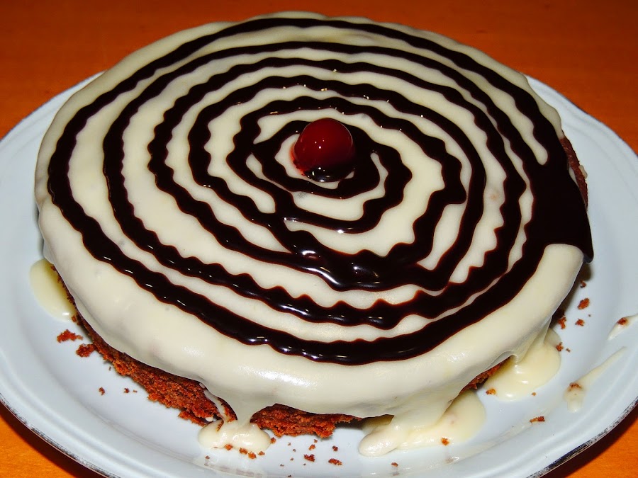 Por último, se decora con sirope de chocolate y una guinda en almíbar. O con lo que tengáis en casa.