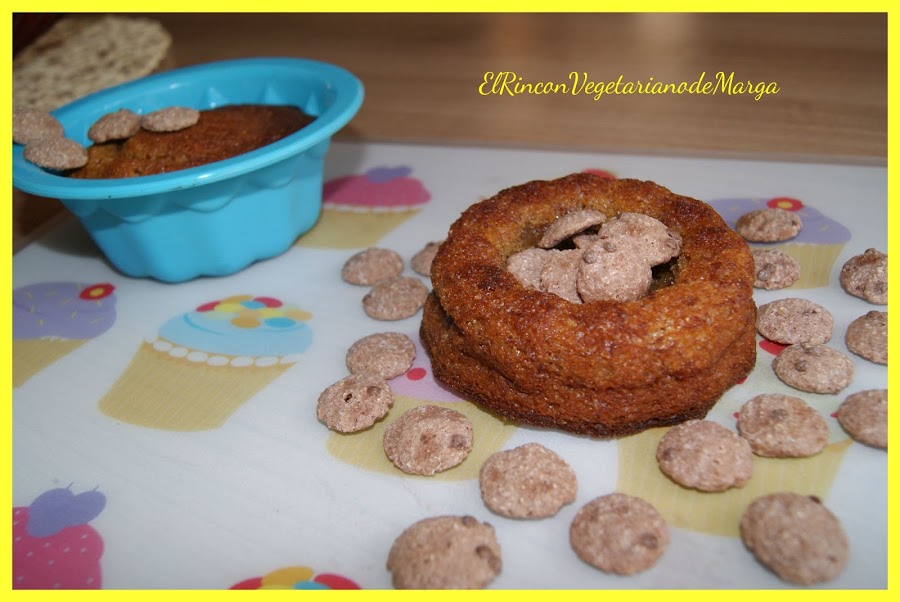 Poner en un bol todos los ingredientes húmedos (huevos, margarina derretida, nata (crema de leche) y dulce de leche) y batir hasta que quede homogéneo, seguidamente añadir los ingredientes secos (la harina tamizada, el azúcar integral, la pizca de sal y el sobrecito de levadura). Seguir mezclando hasta que quede una masa homogénea. En un molde individual de silicona verter la mezcla y añadir unas rodajas de plátano. Hornear a 170ºC unos 25-30 minutos. Comprobar la cocción pinchando el bizcocho con un palillo y cuando salga limpio, sacar del horno y dejar enfriar para desmoldar.