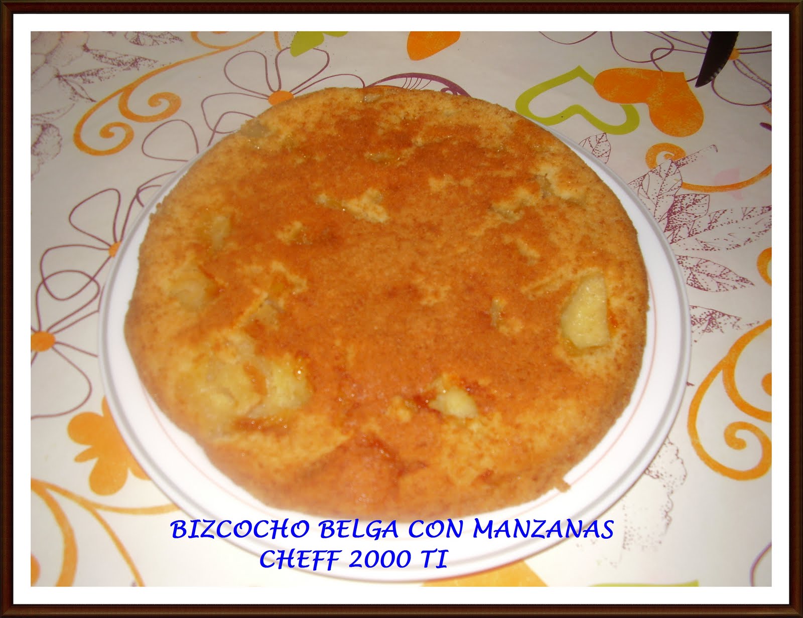 Aparte batimos los dos huevos con los 140 grs de azúcar hasta que quede espeso, y entonces le añadimos, tamizándola, la harina, mezclada con el bicarbonato sódico y el pellizco de sal. Una vez batido, le añadimos los 50 grs de mantequilla, que habremos fundido, y las manzanas, con todo su jugo. Volcamos en la cubeta de la cheff 2000 ti y programamos el menú "cocción horno" 45 minutos.