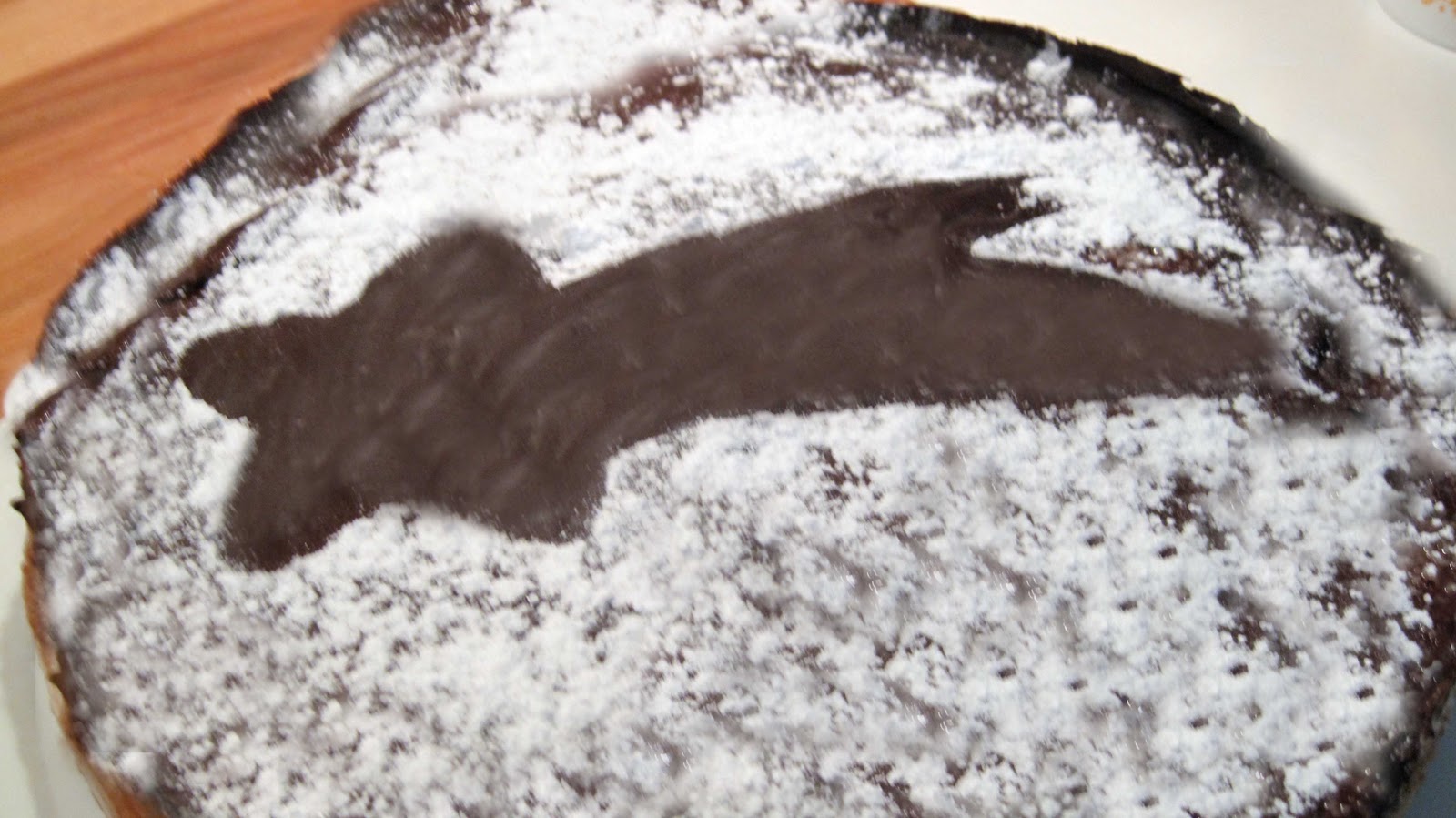 Tenemos preparada la plantilla con el dibujo que nos guste y justo antes de sacarlo a la mesa, la ponemos encima del bizcocho, le ponemos el azúcar glasee y quitamos la plantilla con cuidado. No dejéis de probarlo, os va a sorprender el sabor.quizas tambien te interese: