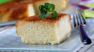 En cuanto se saque el bizcocho del horno, pincharlo y regarlo con el almíbar caliente. dejarlo reposar hasta que se enfríe. Volcarlo en un plato de servir.